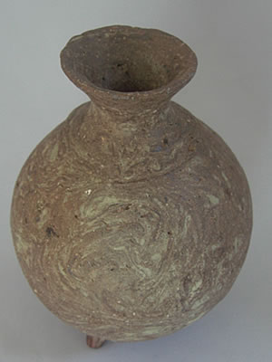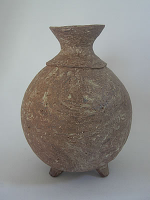 ふっくらとした丸味がユニークな花器。ペルシャの壺を思わせるようでもあります。原土を練りこんであるので、そのマーブル調の表情が面白い花器です。この商品に関するブログはこちら。